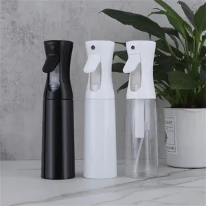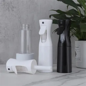 This high pressure bottle can hold any liquid of your choice and produces a continuous spray of fine mist, giving it an aerosol effect. This allows for a large and even coverage of product. Ideal for applying water or hair treatments quickly and easily.